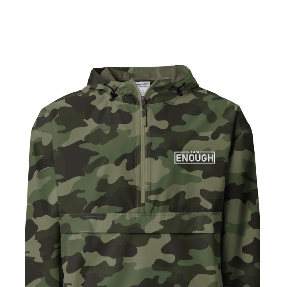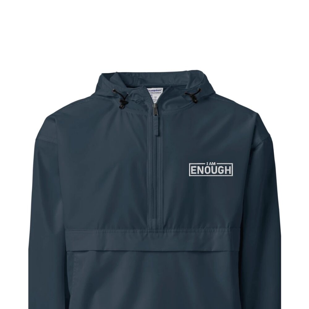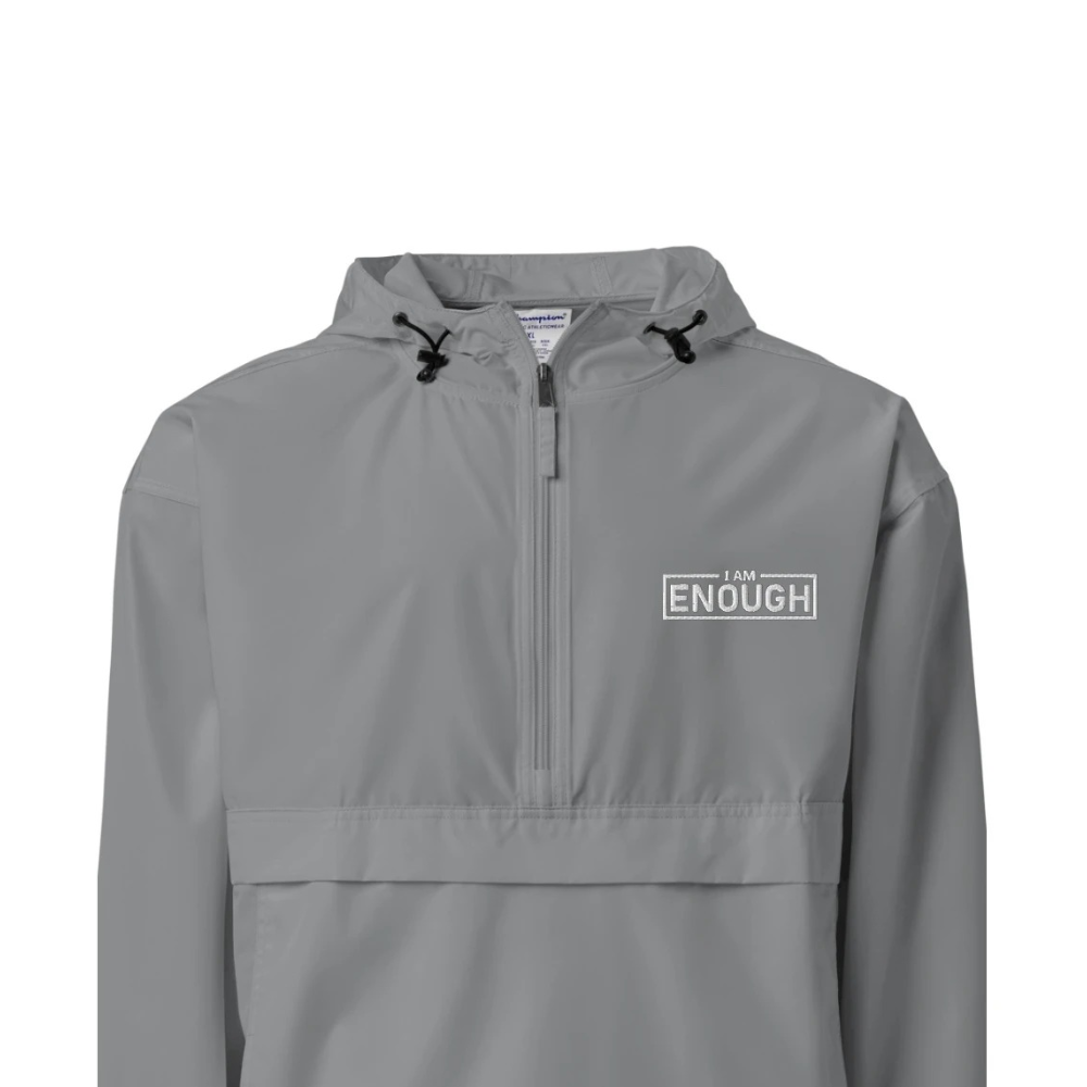 From spontaneous storms to everyday chill, show up prepared—and empowered. The I AM ENOUGH Champion® Packable Jacket combines functionality with purpose. Featuring wind- and rain-resistant fabric, a front kangaroo pocket, and a zipped pouch that transforms the entire jacket into a compact packable design, this pullover keeps you moving with ease and message.